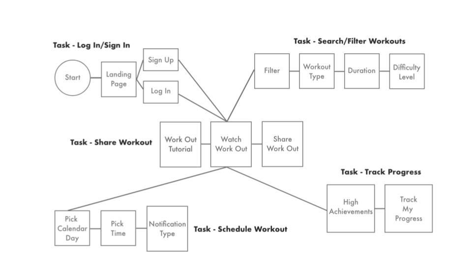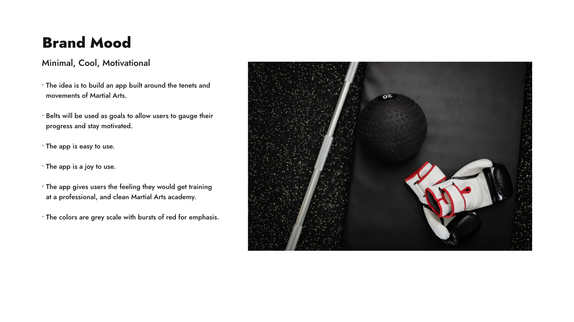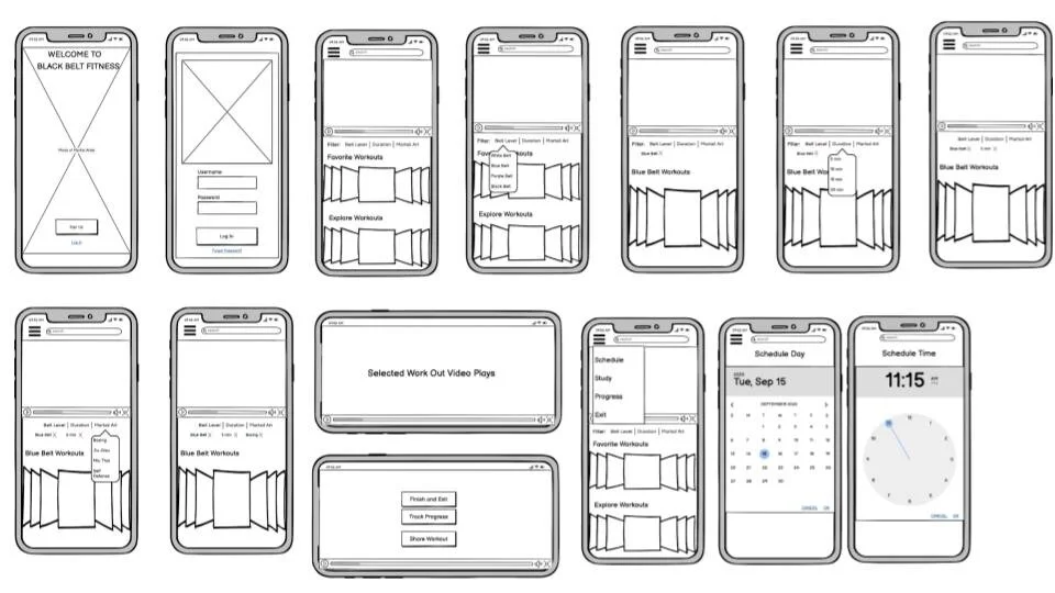Utilizing the Design Thinking process, I began with research into the market and identified the martial arts fitness concept as a path not taken by any of the existing applications.